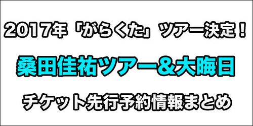 桑田佳祐2017ツアー「桑田佳祐 LIVE TOUR 2017「がらくた」」のチケット先行予約やプレオーダー情報、一般発売日、ライブスケジュール日程情報をまとめました。ツアーには恒例の大晦日年越しライブも含まれます。チケット先行抽選情報は随時更新します