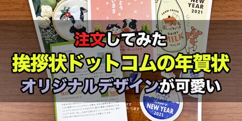 2021年用『挨拶状ドットコム』の年賀状を注文した感想です。うし年ならではのギューニューイヤー年賀状が可愛くてお薦め。猫の年賀状「にゃん賀状」や「刺繍年賀状」などもあり、注文者には「きずなばこ」をプレゼント!